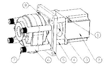 3)將M5X30螺釘和螺母M5將步進電機安裝到泵固定板上,螺釘外面套上支柱,同時將電機軸安裝到聯(lián)軸器的內(nèi)孔中,并將聯(lián)軸器螺釘緊固;