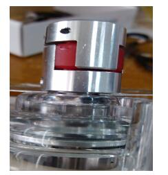 注意:可把聯(lián)軸器放進電機軸中,進行目測偏移判斷,如圖,保證聯(lián)軸器安裝進去能夠位置均勻,不存在較大的徑向誤差。