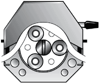 | 蠕動泵頭分為兩部分:轉子和泵殼。泵管被固定放置于轉子與泵殼之間,轉輪壓緊泵內的泵管。 |