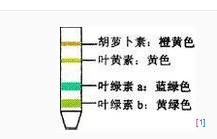 黃色為葉黃素,再下面藍綠色為葉綠素a,**后的黃綠色為葉綠素b。