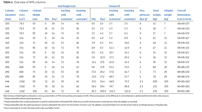 使用BPG300層析柱進(jìn)行放大的工藝參數(shù): 裝柱體積V柱= S柱h=3.14×1.52×1L=7L; 裝柱需要slurry體積Vslurry=V柱×PF/Cslurry 以DEAE Sepharose Fast Flow為填料, 則,Vslurry=7×1.15/0.75L=10.73L;