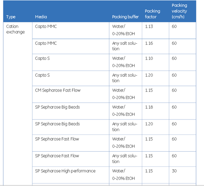 以DEAE Sepharose Fast Flow填料為例,其填料因子(PF)為1.15,新填料(slurry)濃度為75%(保存于20%乙醇中),耐壓3bar。 2.3 確定放大后的工藝參數(shù)