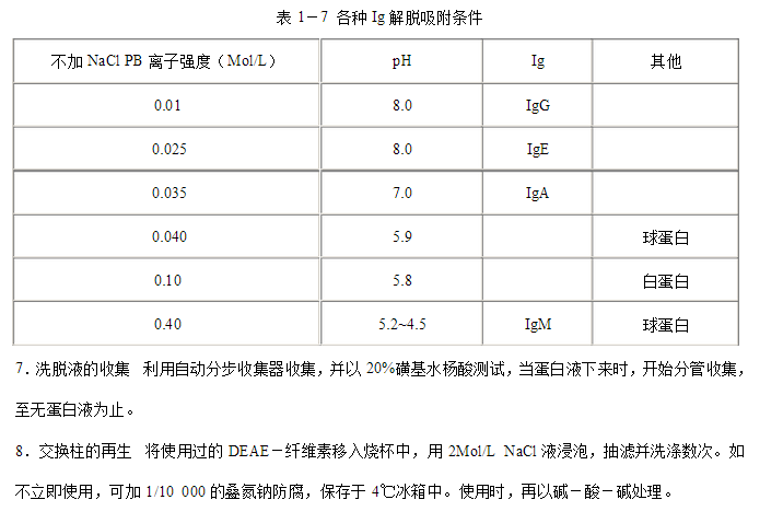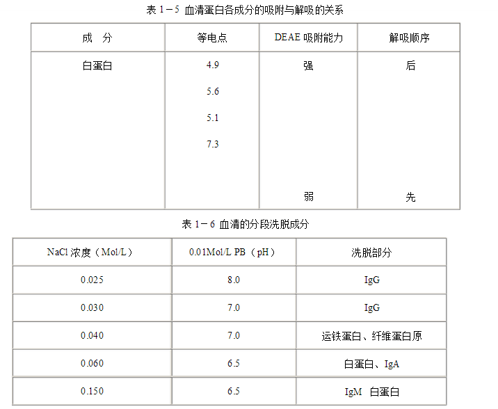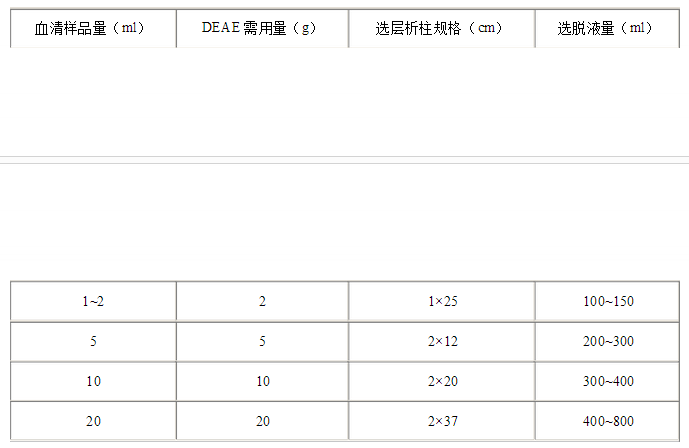 表1-4 分離的血清與所需DEAE—纖維素量及其他條件的大致關系