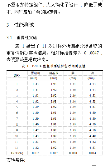 1.2 P200 Ⅱ型高效液相色譜儀的性能特征