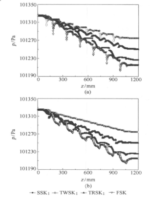 也會產(chǎn)生影響。圖 5 分別為兩代表點沿軸線的壓強 |